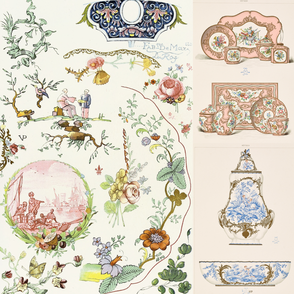 Build pages around Victorian fashion plates, tea etiquette, and calling cards. Lace paper, cameo silhouettes, and portraits add refinement and charm. See examples of porcelain patterns and how they can be used in paper collage art.