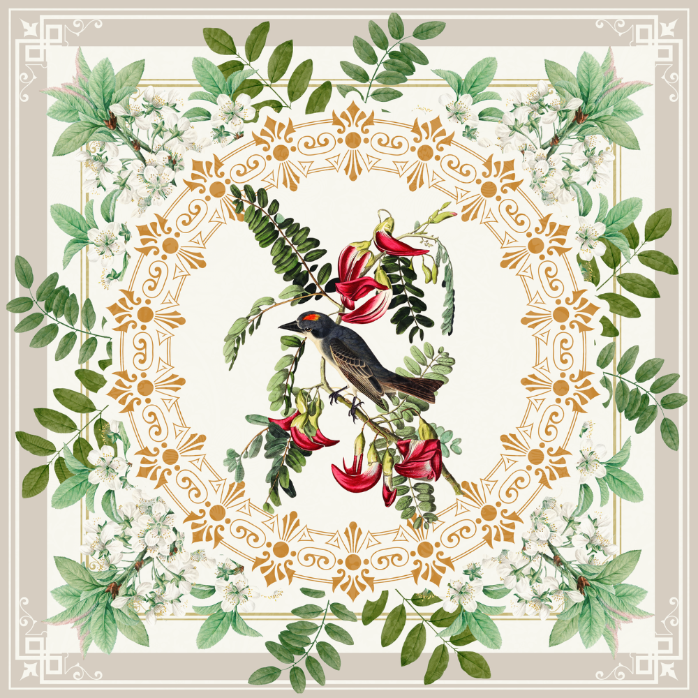Botanical Collage, bird, flora, and decorative embellishment.